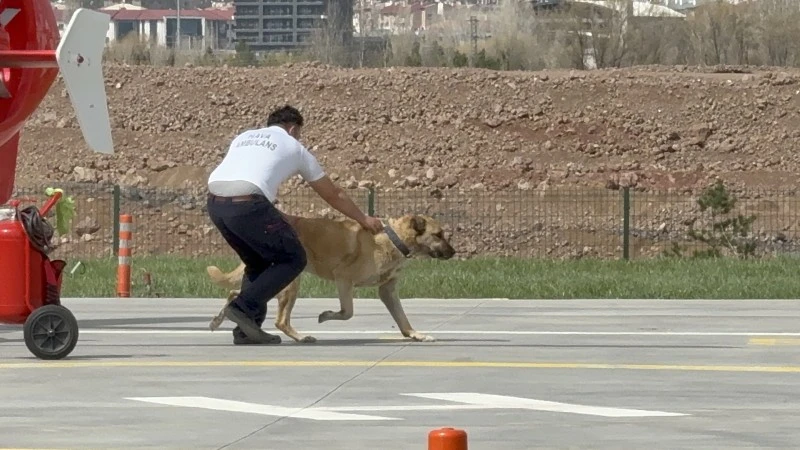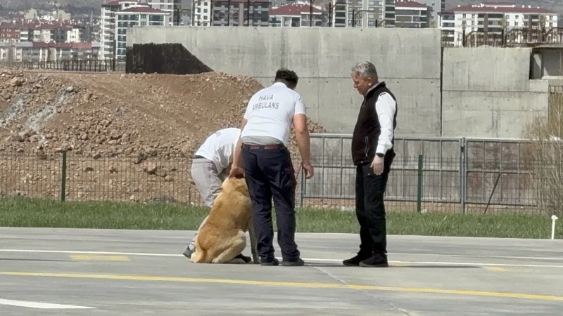 Kentte önemli bir sağlık hizmeti görevi yürüten ambulans helikopter pisti, bu kez ilginç bir görüntüye sahne oldu. Helikopter pist alanında muhafaza edilen ve hava ambulansı doktoru Asuman Göktaş'a ait olduğu öğrenilen Kangal cinsi köpeğe pansuman yapıldığı görüldü.