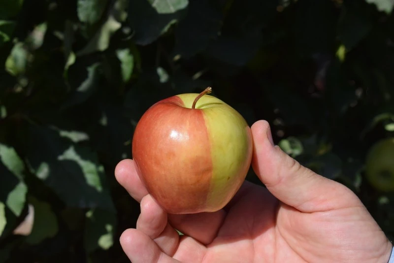 Elmanın iki farklı tadı olduğunu söyleyen Baş, “Bir de elmamızın çok değişik bir özelliği daha var. Bir tarafı kırmızı bir tarafı ise sarı bir elma. Tadı da farklı. Kırmızı taraftaki tat biraz daha tatlı, bu sarı taraftaki tat ise ondan biraz farklı, hafif mayhoş gibi. Bu elmada hem iki renk var, hem de sağında solunda belli oranda tat farkı var. Bu da çok özel bir şey ve bizim için çok enteresan oldu" diye konuştu.