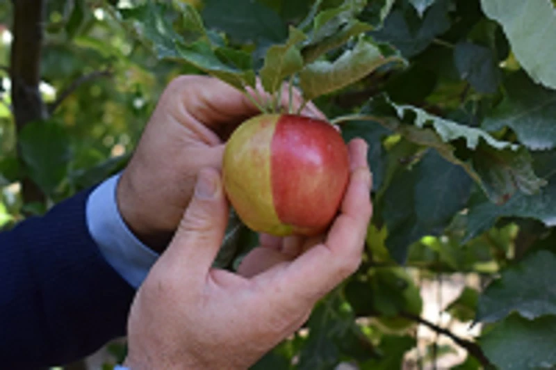 Çift renkli elma hakkında bilgi veren bahçe sahibi Ahmet Baş, “Dünyanın en kaliteli elmalarının üretildiği yerlerden biri olan Karaman’da 13 yıldır elma üretimi yapıyorum. Aslında elmacılık bizde dededen gelme bir meslek, çünkü dedemin de elma bahçesi vardı. Yani yıllardır çocukluğumuzdan beri elmayla iç içeyiz. Çift renkli elmamızı ilk olarak geçen yıl tespit ettik. Elma sezonunda, işçi sayımız bayağı yüksek. İşçilerimiz birkaç ağaçta bu çift renkli elmadan görmüş ve özellikle genç olan işçilerimiz, birazını yemiş, birazını da götürmüşler. Bana sadece resmi kalmıştı. Bu yıl tekrar aynı ağaçlarda bu elmanın tekrar olduğunu duydum. Baktım ki aynı şekilde, aynı ağaçlarda bu çift renkli elmalar var. Yine işçi arkadaşlarımız tabii ki birer ikişer tane, nasiplerini aldılar ama sağ olsunlar bir tane de bana bırakmışlar. Bu kesinlikle kağıtla ya da yapışkan bantla yapılan bir şey değildir. Ağaçların bir şekilde mutasyona uğraması sonucu ve böyle iki renkli bir elma meydana gelmiş. Burada kesinlikle herhangi bir insan eli değerek yapılan bir şey yok. Geçen yıl da aynı şekilde olduğu için bu yıl iyice araştırıp hem laboratuvar ortamında hem de doğal yollarla aşılama yoluyla meyvemizi çoğaltmayı ve patentini almayı düşünüyoruz. Çünkü başka ülkelerde böyle bir meyve ya da farklı bir meyve olduğunda hemen insanlar bunun patentini alıp buna bir isim, bir marka koyuyorlar ve dünya pazarına sunuyorlar. Ben de hem Türkiye ekonomisi açısından hem de kendi öz sermayemizin daha geliştirilmesi açısından bu elmayla ilgili gerekli çalışmaları yapmak, çoğaltmak istiyorum. Bence hoş bir ürün” dedi.