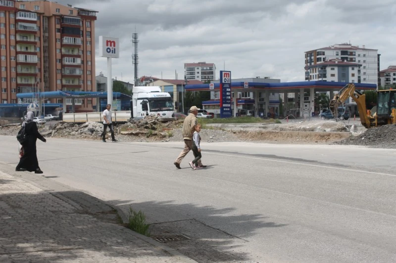 Çalışma nedeniyle bölgedeki yaya üst geçidinin de kaldırılırken, karşıdan karşıya geçen vatandaşlar inşaat çalışmasının ortasında kalıyor.