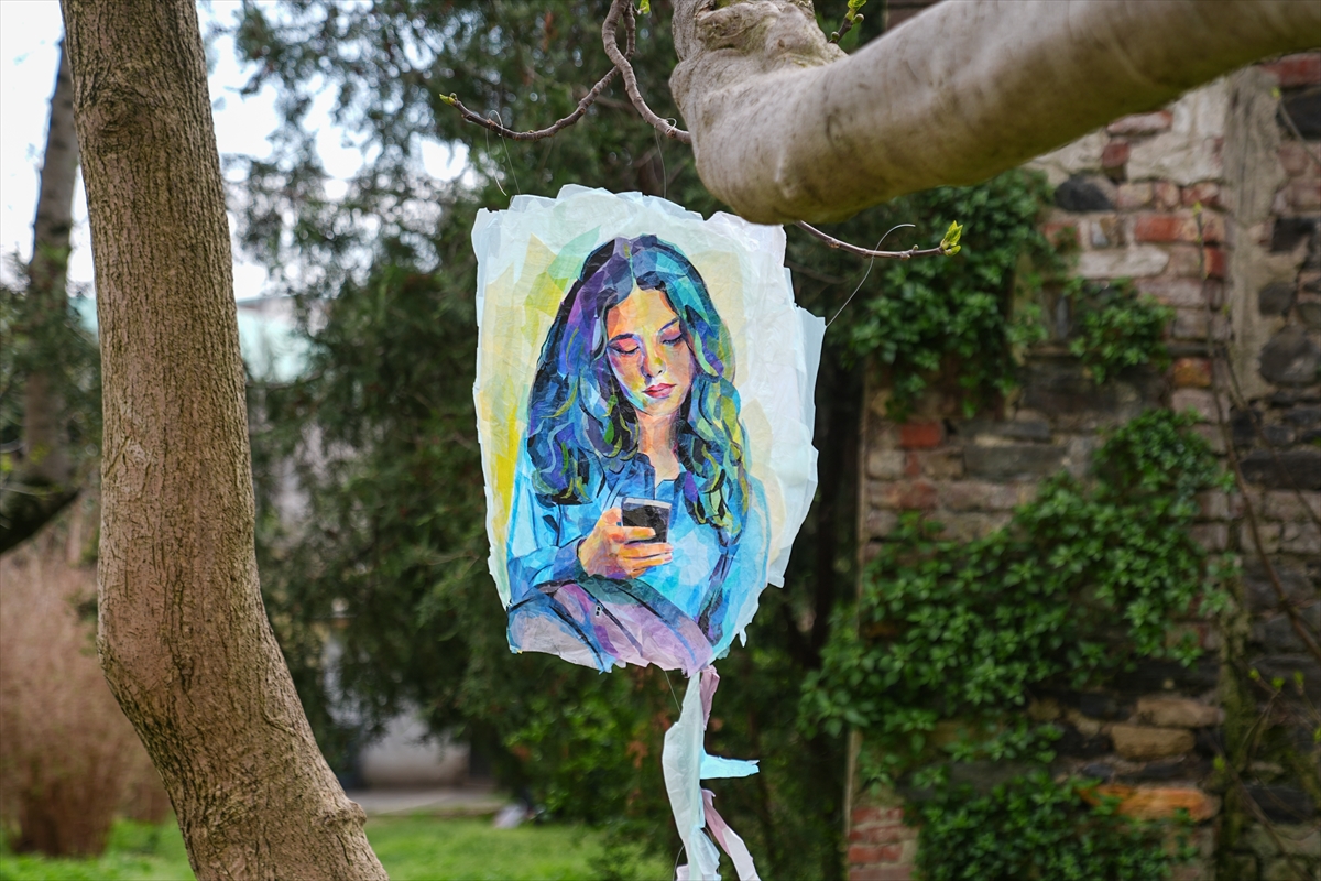 Geleneksel resim malzemeleriyle anlatmak istediği çevre mesajının eksik kaldığını fark eden sanatçı, plastik poşetlerin şeffaf yapısını kullanarak katmanlı bir yüzey oluşturdu.