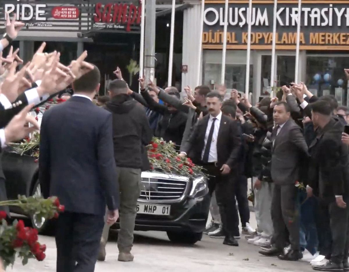 Bahçeli ayrılırken, kendisine sevgi gösterisinde bulunan vatandaşlara bozkurt işareti yaparak selam verdi.