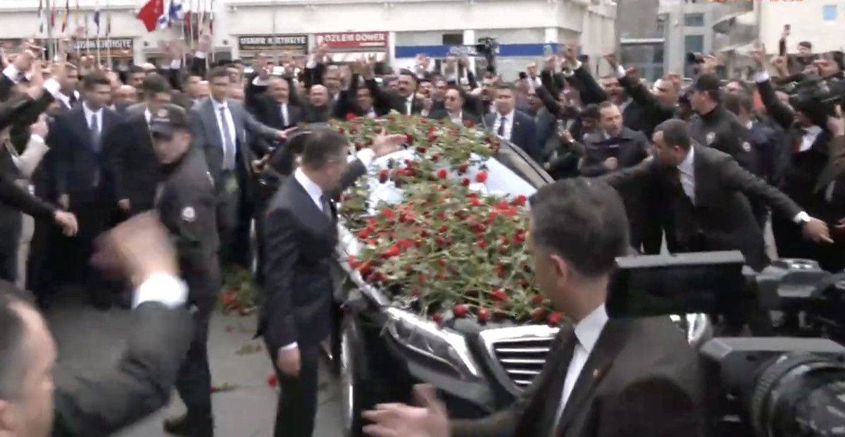 Burada kendisini bekleyen kalabalığın sevgi gösterileriyle karşılandı.