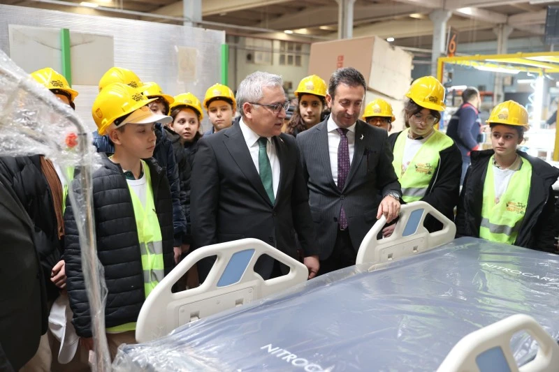 Sivas Valiliği himayelerinde devam eden, \'Genç Girişimciler Keşifte\' projesi kapsamında Celal Bayar Ortaokulu öğrencileri, Vali Yılmaz Şimşek ile birlikte Gökler A.Ş fabrikasını gezdi.