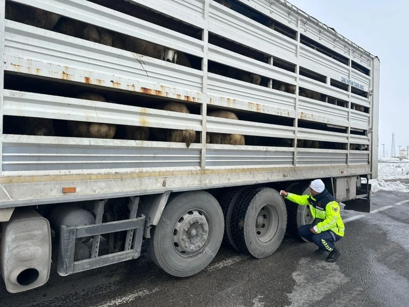 Sivas’ta polis ve jandarma ekipleri sorumluluk bölgelerinde kış lastiği denetimlerini sürdürüyor.