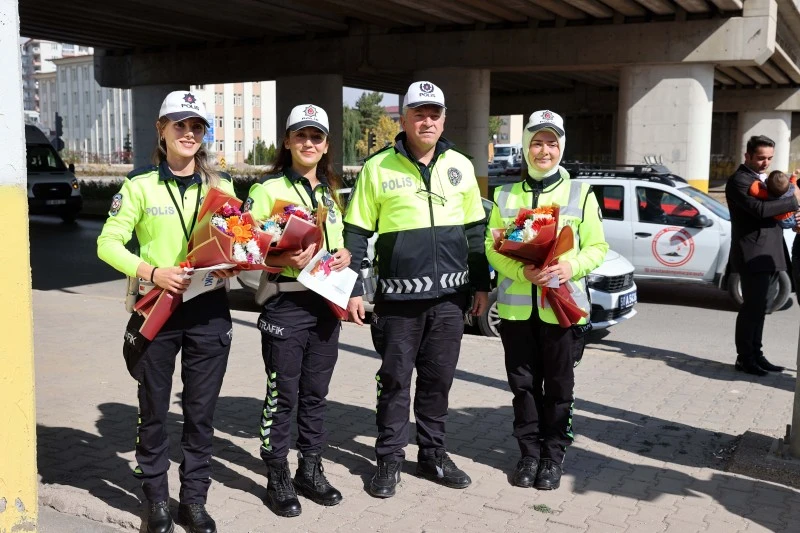Sivas Belediyesi tarafından Numune Hastanesi bölgesinde sürdürülen yol çalışmaları dolayısıyla Halil Rıfat Paşa Köprüsü kavşağında özellikle mesai saatleri başlangıç ve bitiş zamanlarında trafikte yoğunluk oluşuyor. Yoğunluğu azaltmak içinde Sivas Emniyet Müdürlüğü Trafik Tescil ve Denetleme Şube Müdürlüğü’nde görev 3 kadın trafik polisi kavşakta görev yapıyor. Polis memurlarının özverili çalışmalarından dolayı Sivas Şoförler Odası ve Halk Otobüsleri Kooperatifi kadın polis memurlarına teşekkür ederek çiçek takdim etti.