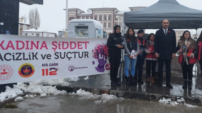 Sivas’ın Şarkışla ilçesinde kadına şiddete dikkat çekmek amacıyla polis ve jandarma ekipleri tarafından broşür dağıtıldı.