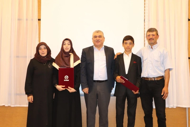 Konuşmaların ardından Müftü Altunkaya, hafız kardeşlere belgelerini takdim etti.