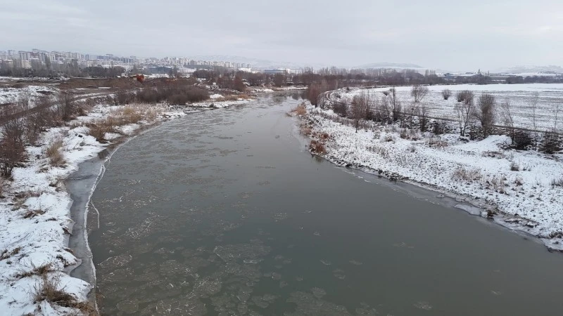 Sivas\'ta yaşanan soğuk havanın etkisi Türkiye\'nin en uzun nehri Kızılırmak\'a da yansıdı. Kızılırmak üstünde adeta buz adacıkları aktı.