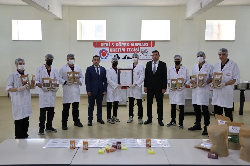 Üretim tesisinde görev yapan öğrenci Burhan Karapınar ise, "Arkadaşlarımızla beraber kedi ve köpek maması üretiyoruz. Burada hem akademik eğitim alıyoruz hem de üretim yapıyoruz. Okuldan mezun olduktan sonra bu işi dışarıda da yapmak istiyorum" şeklinde konuştu.
