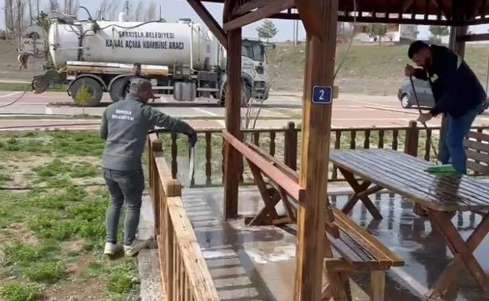 Şarkışla Belediyesi, bayram yoğunluğunun ardından Millet Bahçesi'nde kapsamlı temizlik çalışması başlattı.