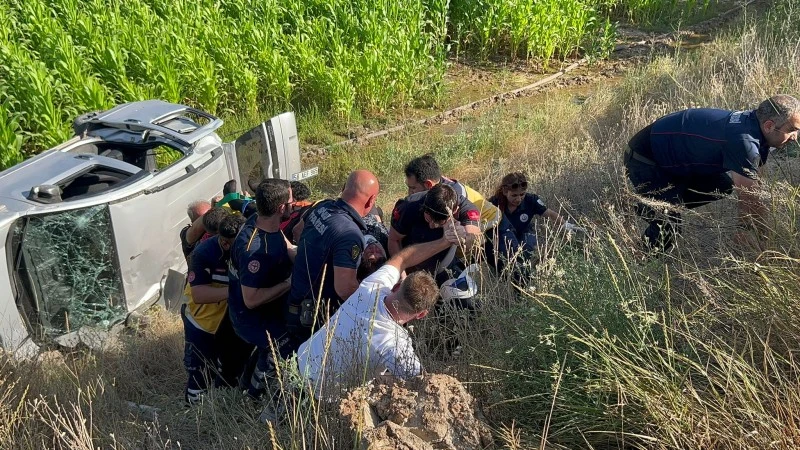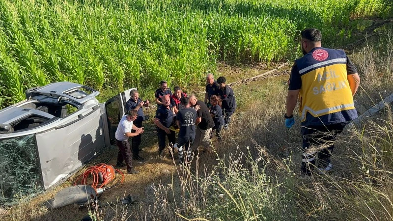 Sivas´ta hafif ticari aracın mısır tarlasına devrilmesi sonucu araçta bulunan Saliha Çalışkan ve oğlu Fatih Çalışkan yaralandı. Araçta sıkışan kadın itfaiye ekipleri tarafından kurtarılırken, 10 metre aşağı düşen araçtan kadının sedyesini taşımak için insan zinciri oluşturuldu.