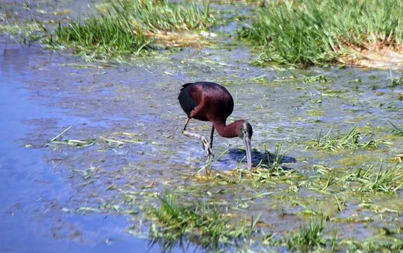 Bir çeltikçi kuşunun kanatlarını açıp güneşlenmesi güzel görüntü oluşturdu.Göç sırasında deltalar, göller, bataklıklar gibi alanlarda konakladığı bilinen göçmen kuşların en belirgin özellikleri arasında uzun ve kıvrık gagası ile koyu renkli tüyleri yer alıyor.