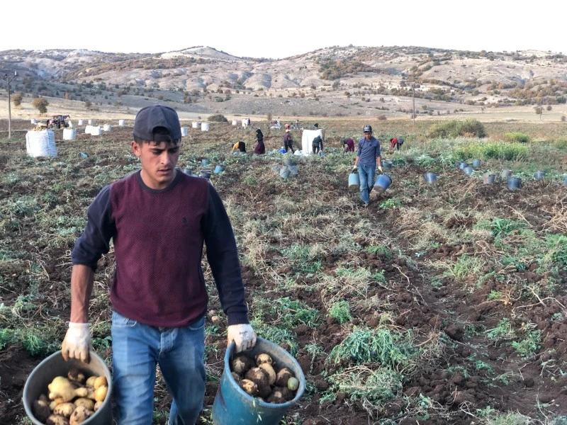 Sivas\'ın Kangal ilçesine bağlı Çetinkaya köyündeki çiftçilerin, patates söküm mesaisi devam ediyor.