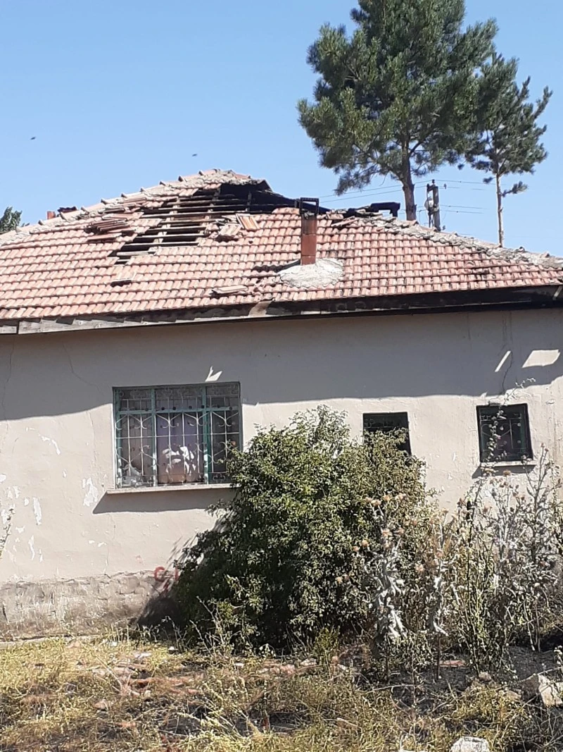 Kısa sürede söndürülen yangında evin çatısında hasar meydana geldi. (AA)