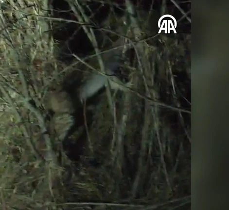 Aşağıyeniköy yakınlarında aracıyla seyir halinde olan köy muhtarı Mustafa Karaca, yolda 2 vaşağın olduğunu fark etti.Karaca, vaşakları cep telefonu kamerasıyla görüntüledi.