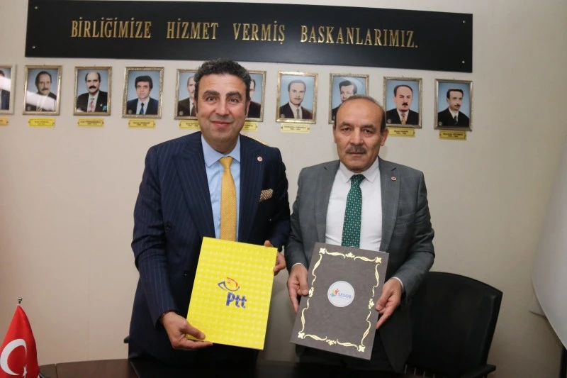 Esnaf ve Sanatkarlar Odaları Birliğini ziyaret eden PTT Başmüdür Vekili Musa Yıldız ile Pazarlama ve Satış Müdür Vekili Emre Karaçam, SESOB Başkanı Hakan Demirgil ile bir araya gelerek esnafların kargo hizmetlerinde yüzde 20 oranında indirimli faydalanmaları, PTT Akıllı Esnaf Sanal Pos ile esnaflara kolaylık sağlanması noktasında işbirliği yaptı.