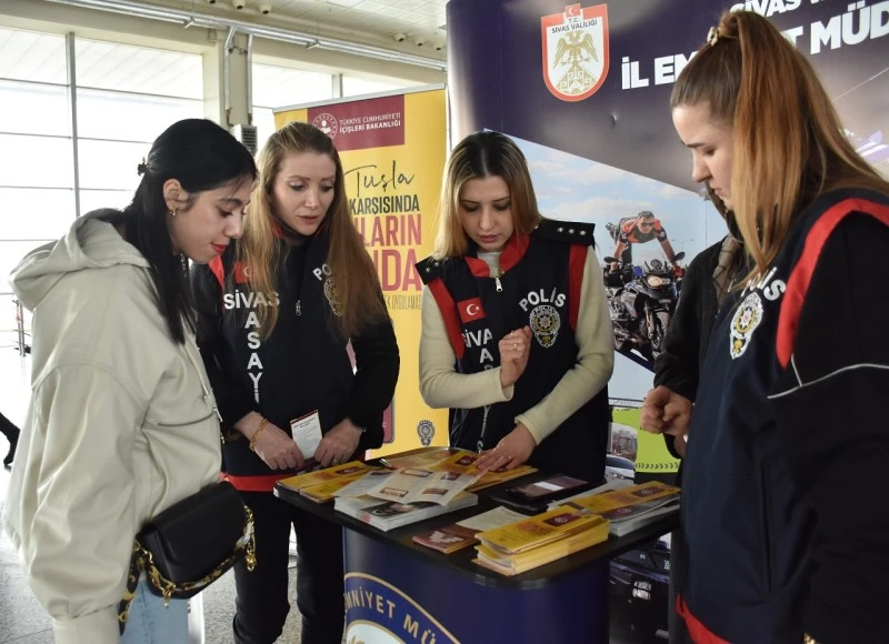 Sivas’ta polis ekipleri Kadına El Kalkamaz ve KADES broşürü dağıtarak vatandaşları bilgilendirdi.