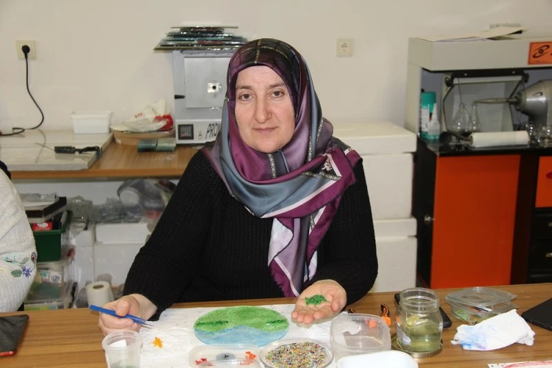 Öğrenim aşamasında kolay işlenebilir cam çubukların kullanıldığını, sonraki aşamasa ise atık cam şişeleri özel fırında eriterek farklı aksesuarlara dönüştürdüklerini anlatan Cıbır “Sivas’ın ilgisi çok güzel umduğumdan çok çok iyi hanımlarımız da gayet güzel çalışmalar sergiliyor ben çok memnunum. Yapacağımız ürünün büyüklüğü ne kadarlık bir çalışma yapacağımız kaç aşamalı olduğuna göre değişiyor. Bazı ürünlerimiz var ki 2 kez 3 kez fırınlananlar var. Çöktürme çalışmalarımız 2 kez fırınlanıyor. Özelikle şişelerimiz önce şişelerimizi alıp fırında çöktürüp daha sonra üzerine işlem yapıyoruz. Kursiyerlerimizin istekleri doğrultusunda ilk olarak ben tablolar ile başlattım daha küçük ürünlerle başlattım fakat kurabiyelikler, sunum tabakları, dekoratif ürünlerle devam ettik ” diye konuştu.