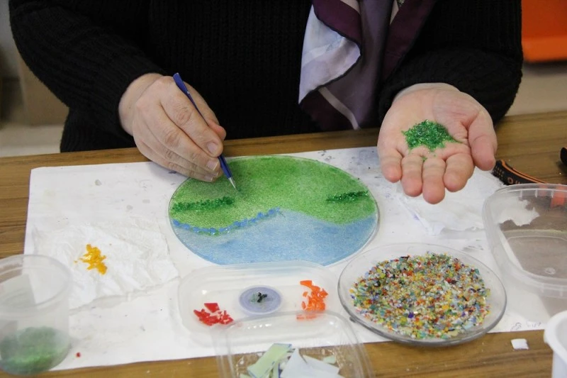 Sivas’ta Halk Eğitim merkezinde geçtiğimiz yıllarda açılan Cam Şekillendirme kursu kentte ilk olma özelliği taşıyor. Kursa katılan 25 kadın, hem boş vakitlerini değerlendiriyor hem de eserlerini satarak aile ekonomisine katkı sağlıyorlar. Geri dönüşüme de önem verilen kursta atık cam şişelerden çalışmalarda yapılıyor. Kursta iki teknik kullanılarak çalışılıyor. Kursiyerler 1500 derece ısıyla ve kırma tekniğiyle birbirinden eşsiz ürünler ortaya çıkarıyor. Usta Öğretici Dilek Cibir’dan cam işlemenin ayrıntılarını öğrenen kadınlar camdan takı, sunumluk, tablo, kurabiyelikler, dekoratif ürünler gibi çeşitli objeler üretiyor.