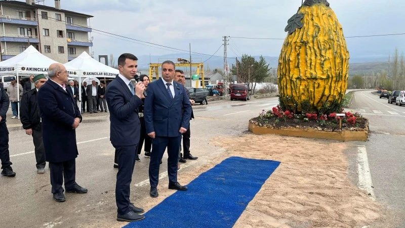 Akıncılar ilçesine belediye tarafından Ahmet Tekin Kavşağına ilçenin eşsiz lezzeti kavunun tanınırlığını artırmak amacıyla dev maketi yapıldı.