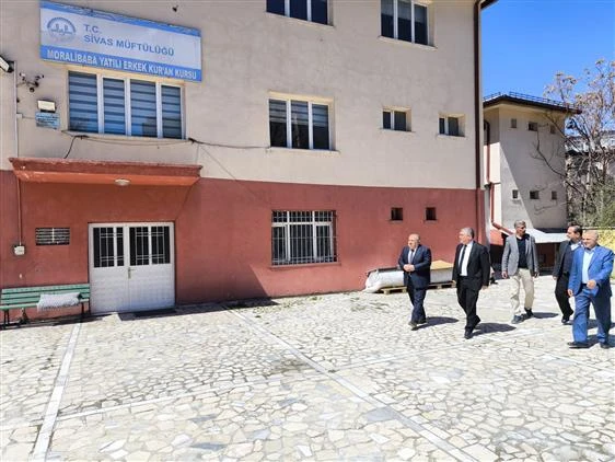 Tadilat sonrası Kur'an Kursu ve Sivas İl Müftülüğü Gençlik Merkezi olarak hizmet verecek olan binada Müftü Altunkaya ve Bölge Müdürü Karaca bilgi alışverişinde bulundu.