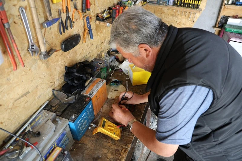 Bayram Uslu bilişim teknolojilerine ilgisinin merakla başladığını belirterek, "1997 yılında Şırnak'ın Cudi Dağı'nda girmiş olduğumuz bir operasyonda yaralı arkadaşımı çıkarırken vuruldum. Bu elektronik tutkusu çocukluğumdan gelen bir şey. Merak üzerine başladım. Sürekli araştırarak deneme, yanılma yöntemiyle yapacağım şeyleri yapıyorum. Bugüne kadarki en büyük projem telefonla aracı uzaktan kontrol etmekti. En çok zorlandığımda onun yazılımıydı. Tekerin üzerine herhangi bir cisim konulduğunda telefonuma mesaj geliyordu. Benden habersiz kapısı açıldığı takdirde mesaj geliyordu. Araba ben istediğim zaman çalışıyordu. Bunun mesafe olayı yoktu. GSM'in çektiği her yerde çalışabiliyordu. Elektrikli fayton yaptım. Sürekli şarja takıp çıkarmak yerine çözüm bulmak istedim ve güneş paneli yerleştirdim, şu anda kullanıyorum" dedi.