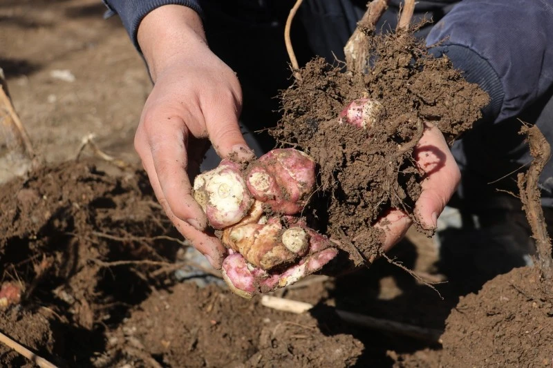 Doğadan toplanan yer elmasının ekimi ilkbahar aylarında yapılmıştı. Patates gibi toprağa ekilen elmaların hasadına başlanıldı. Pazarlarda da kilosu 50 liradan satılan yer elmasının, bünyesinde barındırdığı A ve B vitaminleri sayesinde birçok hastalığa iyi gelmesiyle biliniyor. İdrar söktürücü, kabızlık önleyici, yaşlanmaya karşı etkili ve diyet menülerinde de yer alan bu meyve özellikle de şeker hastalığına iyi gelmesiyle halk arasında biliniyor. Yer elmasının küçüklerinin tohum olarak kullanıldığını ifade eden pazarcı esnafı Ethem Yıldız, yer elmasının çok hızlı bir şekilde üreyip çoğaldığını söyledi.