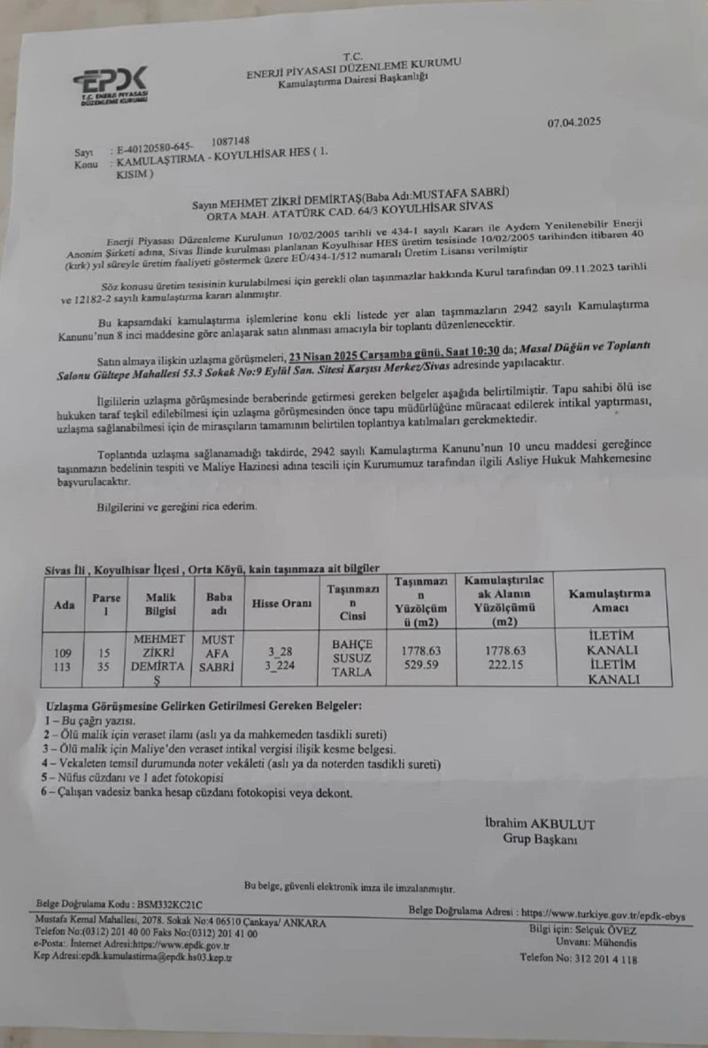 Ekilebilir arazilerinin az olduğu, ancak yerel tohumdan üretilen coğrafi işaret tescil belgeli Koyulhisar domatesinin yetiştirildiği bölgede GES kurulma ısrarı, projenin “ÇED Olumlu” kararına karşın devam ediyor. Projenin yapılmak istendiği bölgedeki kamulaştırma ve satın almalara ilişkin toplantı daveti, bölge halkına gönderildi. Toplantı, yarın saat 10:30’da Sivas Merkez’de bulunan Masal Düğün ve Toplantı Salonu’nda yapılacak.
