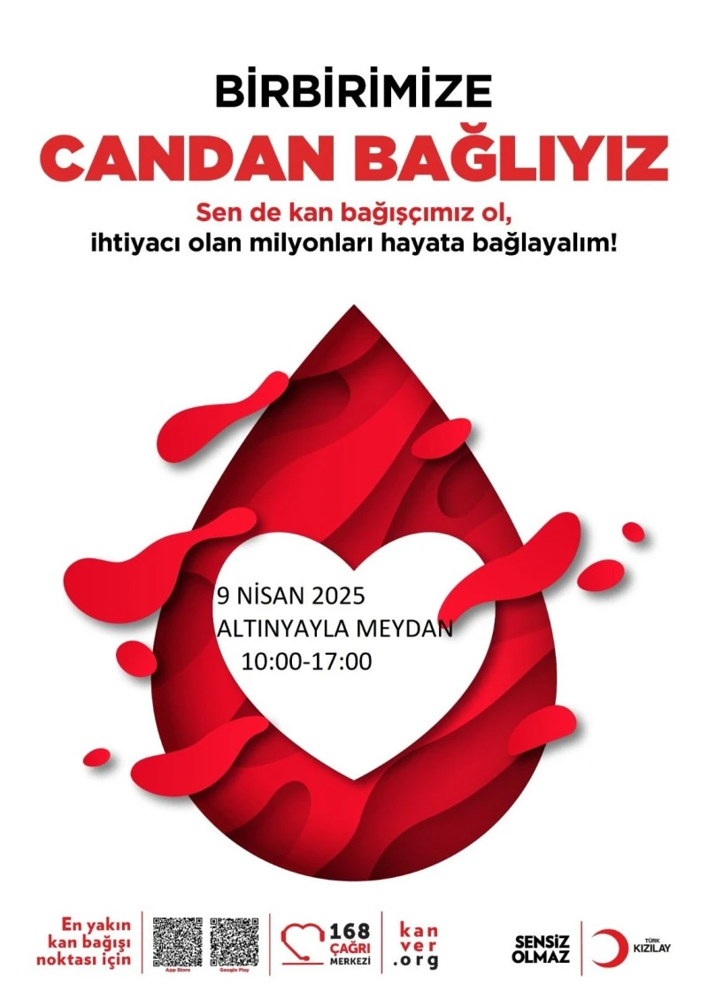 Yapılan duyuruda kan bağışında bulunmak isteyen vatandaşların, 9 Nisan 2025 Çarşamba günü, saat 10.00 ile 17.00 arasında Altınyayla Meydanı’nda kurulacak olan Kızılay kan bağışı noktasına gelerek destek verebileceği belirtildi.