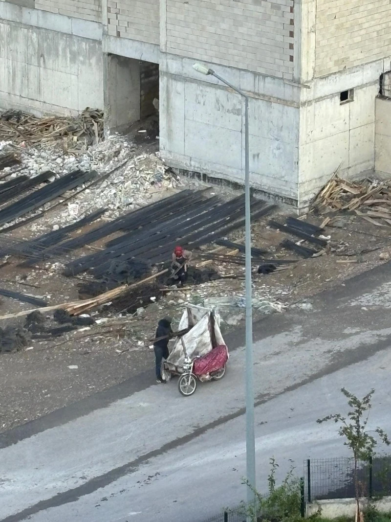 Sivas’ta bir inşaat alanında bulunan demirleri çalan iki kağıt toplayıcısının hırsızlık yaptığı anlar, cep telefonu kamerasına yansıdı.
