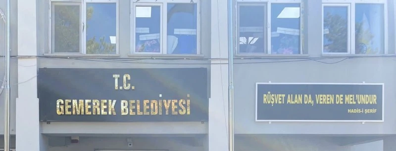 Gemerek Belediyesi binasına “Rüşvet alan da veren de mel’undur” yazılı tabela asıldı.