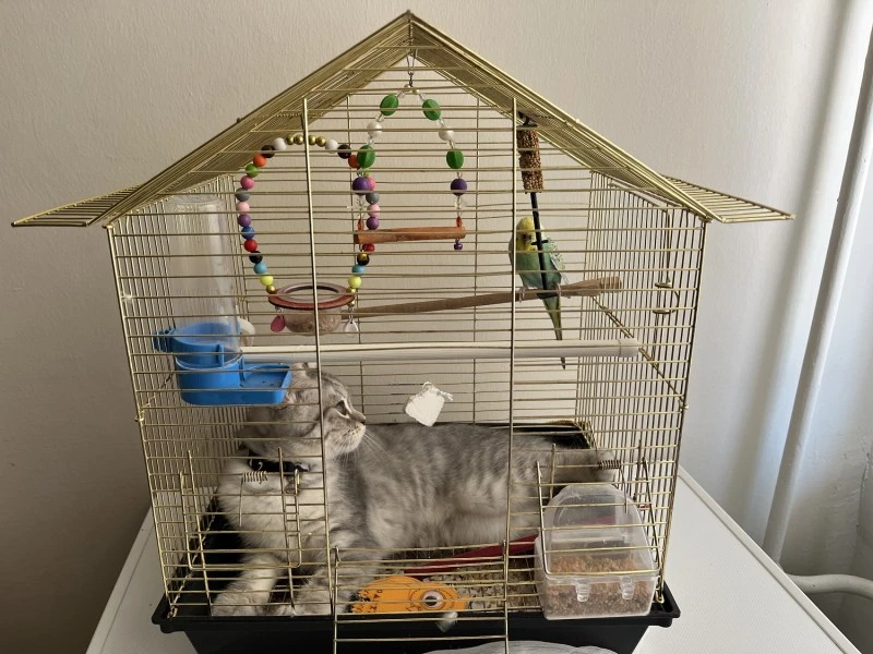 Akkışı, küçük oğlunun isteği üzerine önce muhabbet kuşu alıp eslemeye başladıklarını, oğlunun bu kez kedi sahiplenmek istediğinde ise tedirginlik yaşadığını belirterek, “Önce tedirgin oldum. Çocukluğumda bir kedinin güvercin yavrularını yemesine şahit olmuştum. Fakat kediyi aldıktan sonra göndük ki kuşu sevdiğimiz zaman oda yanımıza gelip kuşa ilgi gösterdi. Zamanla iyi bir arkadaş oldular. Şunu anladık, eğitildiği zaman avla avcı aynı kafeste yaşayabiliyor” dedi.