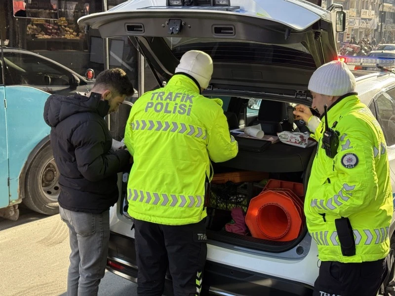 Edinilen bilgilere göre sürücü belgesi bulunmayan İ.C.Y., yağ kaçağı bulunan 58 ZD 129 plakalı traktör ile sanayiye gitmek istedi. Büyük araç trafiğine kapalı olan İnönü Bulvarına giren sürücü trafik polislerince durduruldu. Polis ekiplerince yapılan sorgulamada traktörün sigorta ve muayenesinin olmadığı belirlendi.