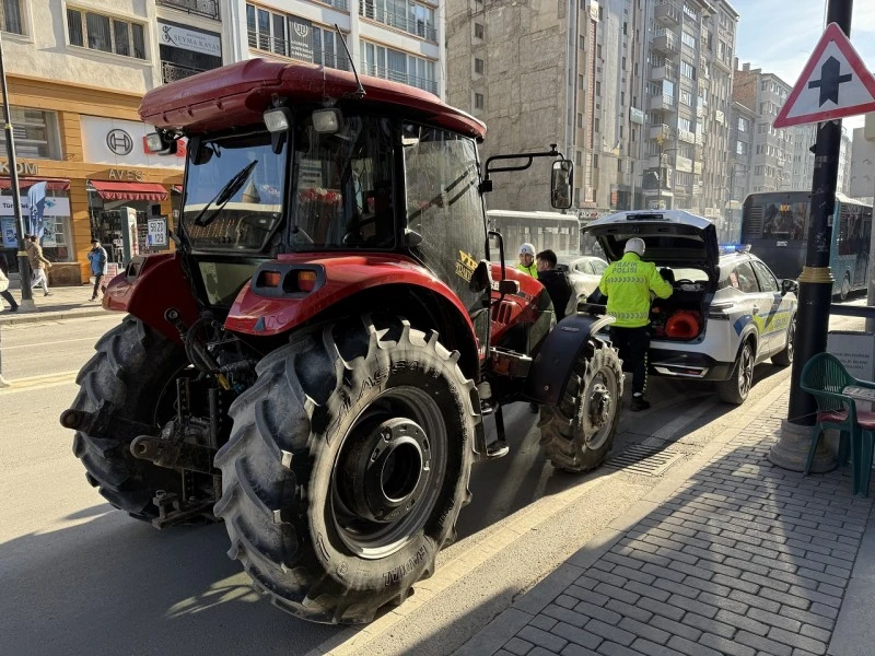 Sivas'ta Caddeye Giren Traktöre Ceza Yağdı
