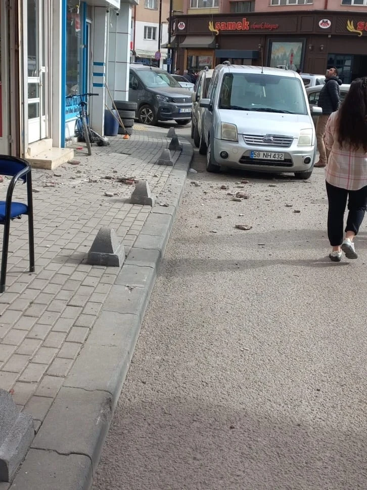 Sivas’ta Paşabey Mahallesinde bulunan bir apartmanın duvarından kopan sıva parçası yola saçıldı.