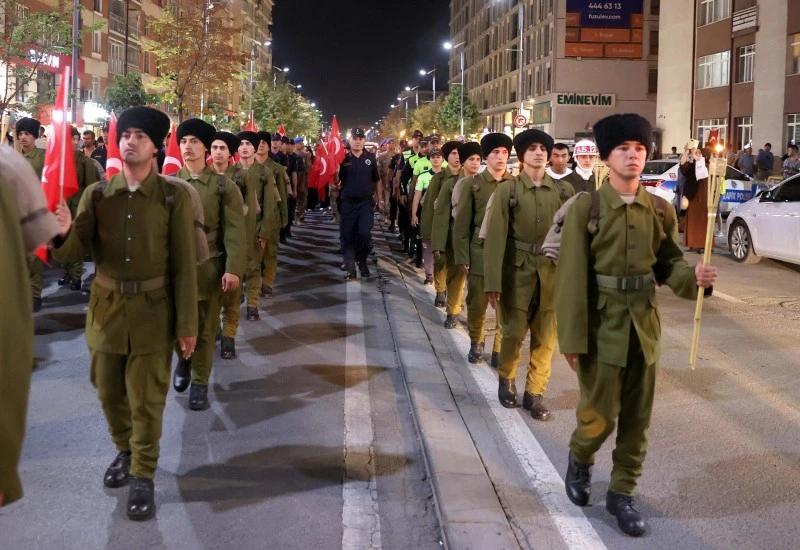 Tren Garı önünde başlayan fener alayı, Cumhuriyet Meydanı'nda son buldu. Fener alayına ellerindeki Türk bayrağı ve Atatürk posteri ile katılan askerler "Vatan sana canım feda", "Her şey vatan için" sloganları eşliğinde yürürken, vatandaşlar zaman zaman tezahüratta bulundu. Fener alayına Sivas Valisi Yılmaz Şimşek, Garnizon ve 5. Piyade Eğitim ve Tugay Komutanı Albay Cüneyt Mutlu kamu kurumu temsilcileri ve vatandaşlar katıldı.