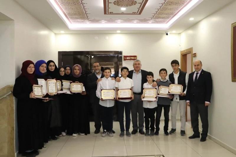 Müftü Altunkaya konuşmasının sonunda hafızları ve hocalarını tebrik ederek Diyanet İşleri Başkanlığı tarafından gönderilen hafızlık belgelerini öğrencilere takdim etti.
