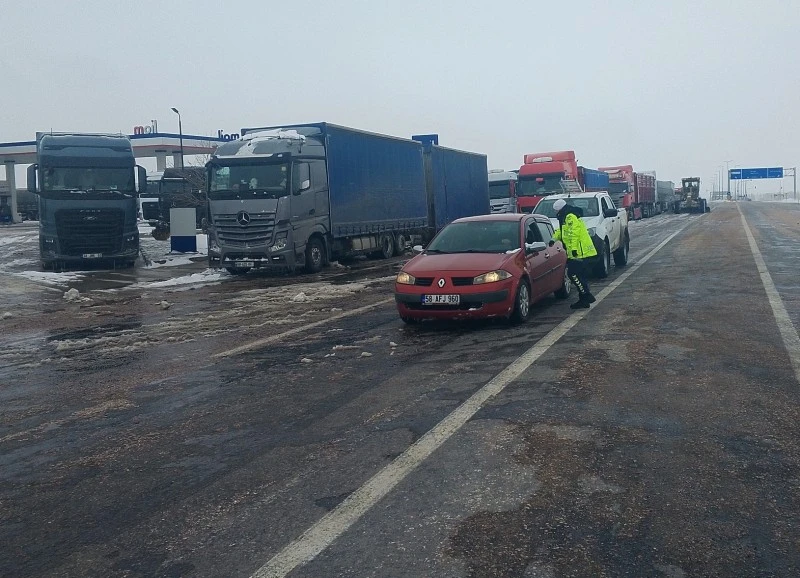 Kar küreme ve tuzlama çalışmalarının ardından kapanan yollar açılırken, yoğun kar nedeniyle ilerlemekte zorlanan bir tır, kar küreme aracı ve greyder yardımıyla tekrar hareket ettirildi. Yetkililer, sürücüleri kış lastiği ve zincir kullanımı konusunda uyararak, dikkatli olunması gerektiğini belirtti.