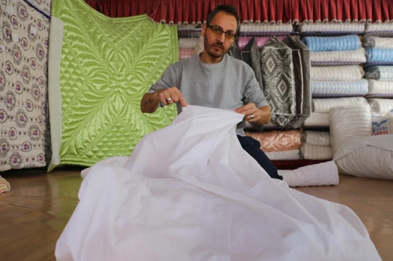 Yorgan Ustası Sinan Toprak, bekar öğrencilerin yün yorgana talep gösterdiğini belirterek, “Baba mesleğimiz, 30 yıldan beri bu işi yapıyoruz. Çocukken bir sanat öğrenelim dedik. Sivas’ta işlerimiz yoğun. Genellikle yün yorgan, elyaf yorgan, pamuk yorgan, yün atma, yastık, kırlent gibi eskiye dair sağlıklı sıhhatli yorganlar yapıyoruz. Sivas soğuk olduğundan dolayı yün yorgan sıcak tutar. Elyaf yazın terletir, kışın dondurur. Sivas’ta soğuk olduğundan dolayı yün yorgan talepleri yoğun. Sağlığına sıhhatine düşkün olan insanlar yün yorgan kullanır. Sıcak memleketlerden gelen öğrencilerimiz de tercih ediyor. Elyaf yerine yün yorgan tercih ediyorlar. Sivas öğrenci bakımından yoğun olduğundan dolayı bekâr öğrencilerimiz de geliyor, talepleri oluyor” dedi.