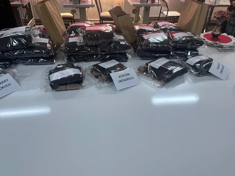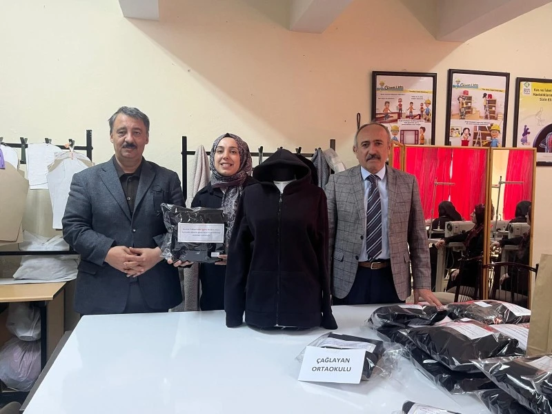 Sivas’ın Yıldızeli ilçesinde halk eğitim merkezi kursiyerleri ihtiyaç sahibi çocuklara için kışlık giyecek dikti.