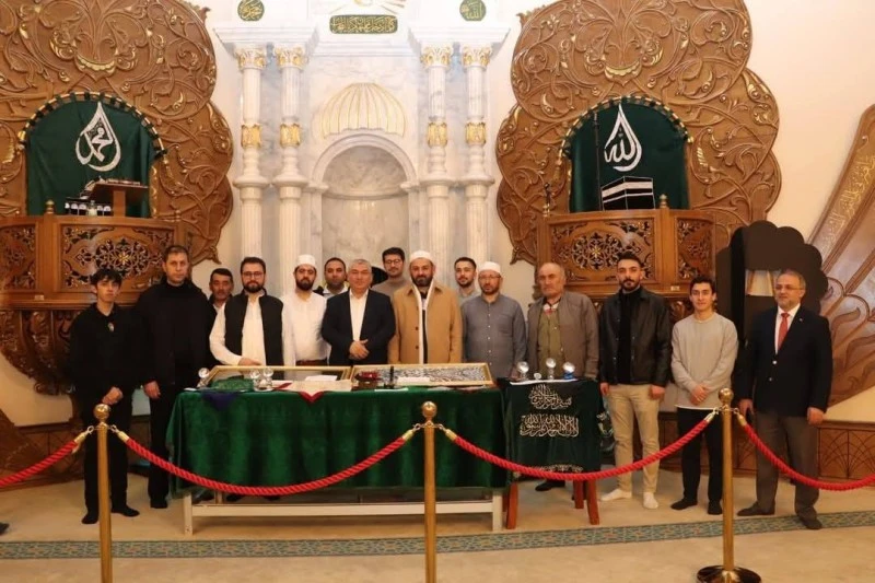 İl Müftüsü Ahmet Celalettin Altunkaya’da camiye gelerek, din görevlileri ile bir araya geldikten sonra kutsal emanetleri ziyaret etti.
