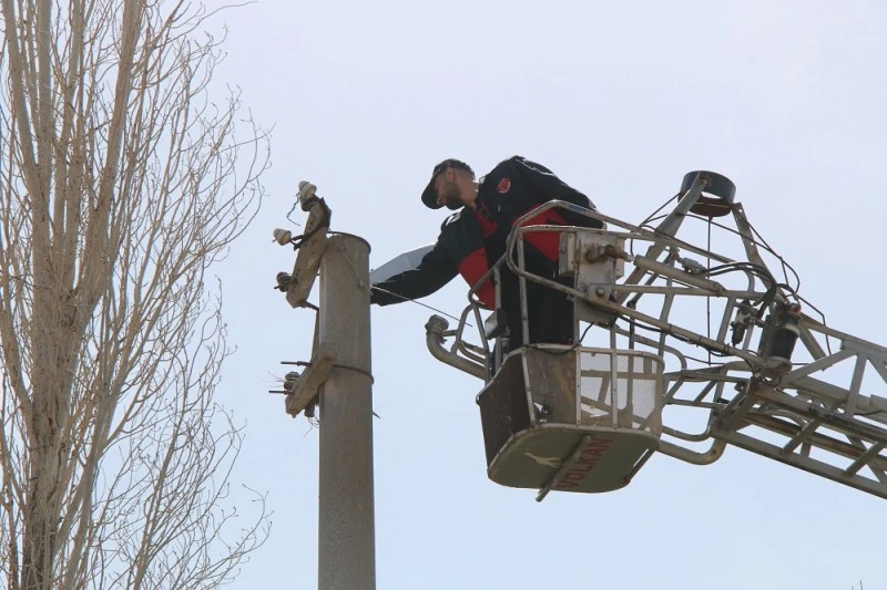 Gültekin Mahallesi sakinleri, elektrik direğinde bulunan yuvalarda konaklayan leyleklerin akıma maruz kalmalarını önlemek amacıyla yuva aparatı hazırlattı.