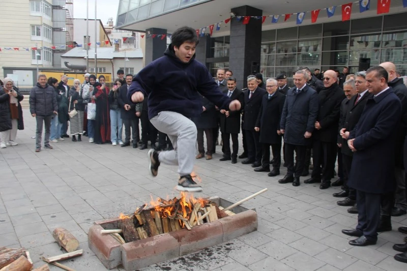 Vali Şimşek ve Başkan Uzun tarafından yakılan ateş sonrası katılımcılar ateşin üzerinde atladı. Daha sonra temsili olarak demir dövülüp, yumurta tokuşturuldu. Fidan Yazıcıoğlu Kültür Merkezi içerisinde devam eden kutlama programında konuşan Vali Yılmaz Şimşek, "Bahar müjdecisi birlik ve beraberliğin simgesi olan Nevruz Bayramını coşkuyla kutluyoruz. Nevruz doğanın yeniden canlandığı aynı zamanda kardeşliğin, dostluğun ve barışında yeşerdiği özel bir gündür. Tarihin derinliklerinden günümüze uzan Nevruz milletimizin kültürel mirasının önemli bir parçasıdır. Orta Asya’dan, Anadolu, Balkanlar’dan, Kafkasya’ya kadar geniş bir coğrafyada kutlanan bu bayram farkı kültürleri ve halkların ortak bir sevgi, kardeşlik duygusunda buluşturur. Eski takvime göre yılın ve baharın ilk gününü yeni takvime göre ise gece ve gündüzün eşit olduğunu simgeleyen Nevruz, Türklerin Ergenekon’dan çıkışını da temsil eder.“ dedi.