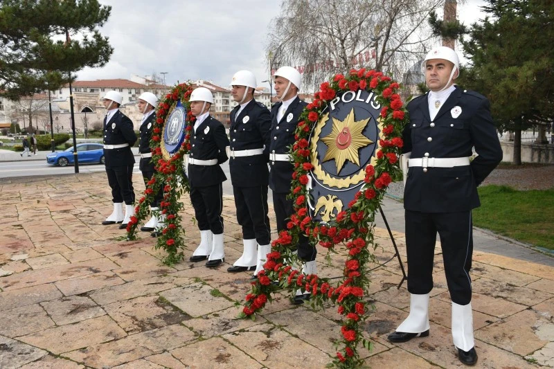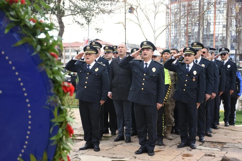10-14 Nisan tarihleri arasında kutlanan Türk Polis Teşkilatı’nın kuruluş yıl dönümü dolayısıyla İl Emniyet Müdürü Burhan Akçay, emniyet müdür yardımcıları ve beraberindeki polisler Cumhuriyet Meydanı’nda bulunan Atatürk Anıtı’na çelenk bıraktı.