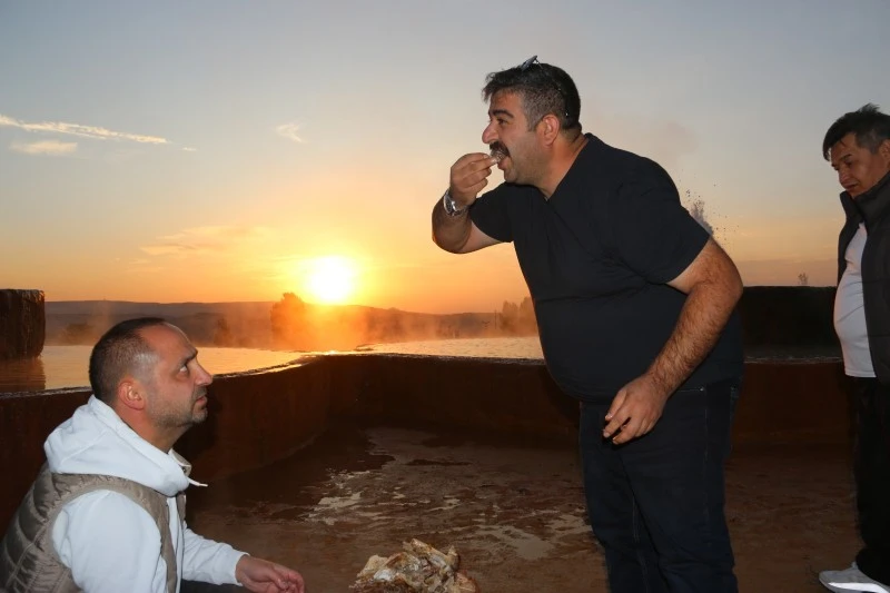 Sivas’ta düzenlenen ‘Gastronomi ve Mutfak Sanatları’ etkinliği kapsamında Altınkale’de güneşin doğumunda ‘kelle’ kırıldı.