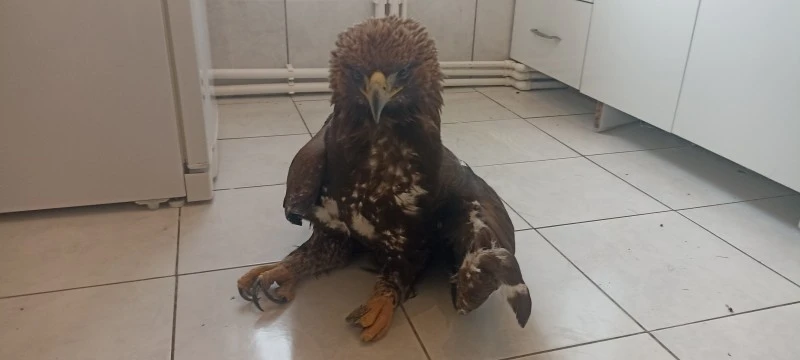 Gürün ilçesine getirilen yaralı kaya kartalı, veteriner hekim kontrolünden geçtikten sonra Doğa Koruma ve Milli Parklar Müdürlüğüne teslim edilecek.
