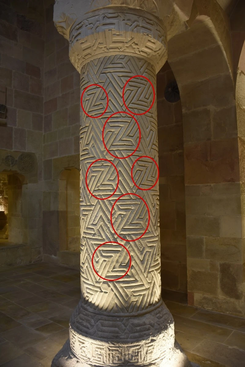 Sivas Cumhuriyet Üniversitesi Mimarlık Güzel Sanatlar ve Tasarım Fakültesi Mimarlık Bölümü Bina Bilgisi Ana Bilim Dalı Öğretim Üyesi Prof. Dr. Uğur Tuztaşı, aynı dönemde Orta Asya'da yapılan eserlerde de benzer motiflere rastlandığını, ancak bunun Latince z harfi olarak nitelendirilemeyeceğini belirterek, "Divriği Ulu Camii ve Darüşşifası'nın anlam evreni içinde kozmoloji önemli bir yer tutar. Darüşşifada yer alan sütundaki z motifinin andıran sembolü görülüyor. Divriği Külliyesi'ndeki yapısal ve dekoratif öğelerin kökeni, konusu yıllardır tartışılan bir konudur. İran'dan tutun, Kuzey Kafkasya, oradan Orta Asya'ya varıncaya kadar çeşitli etkilerin Anadolu'ya geldiği biliniyor. Bu gerçekler dikkate alındığında darüşşifadaki sütun motifinin de kaynak olarak Antik Dönem'den başlayarak gelen etkilerle şekillenen kabartma ve doku kullanımı olduğunu görüyoruz. Hatta bu desen anlayışı dokuma kültüründen de kaynaklanmaktadır. Halı sanatından tutun da birçok etkinin biriktirdiği sentez bir üründür" diye konuştu.